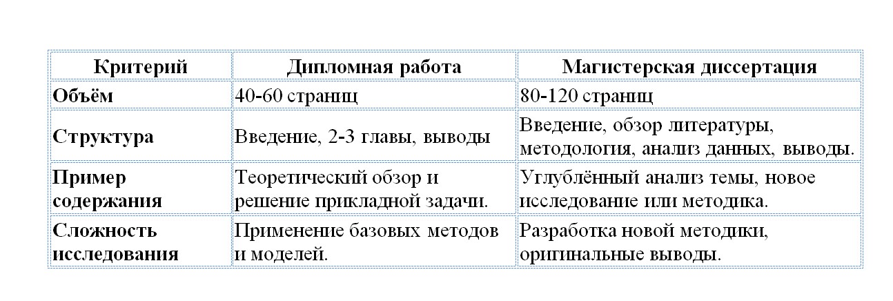 | Параметр | Дипломная работа | Магистерская диссертация |