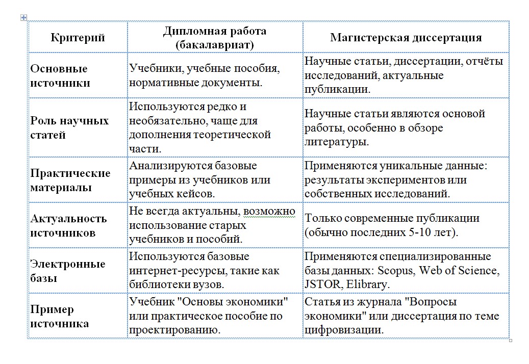 - В бакалавриате можно работать с учебниками, а в магистратуре нужны научные статьи.