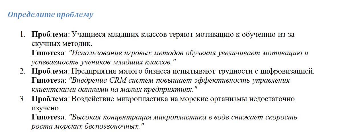 Гипотеза — это предположение, которое можно проверить. Оно строится на основе проблемы, которую ты изучаешь.