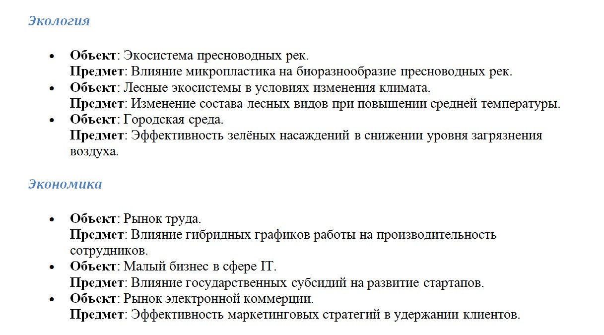 - Если объект — экосистема лесов, то предмет — влияние загрязнения воздуха на биоразнообразие лесов.