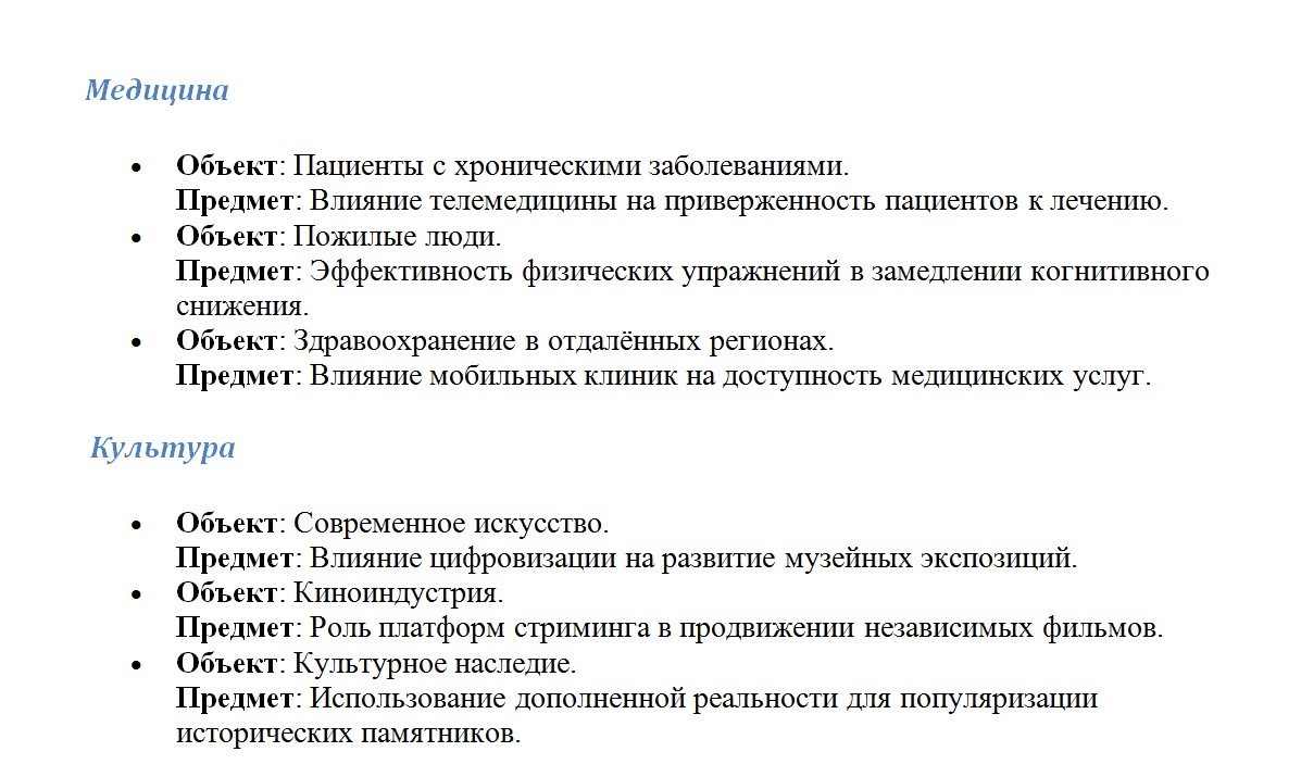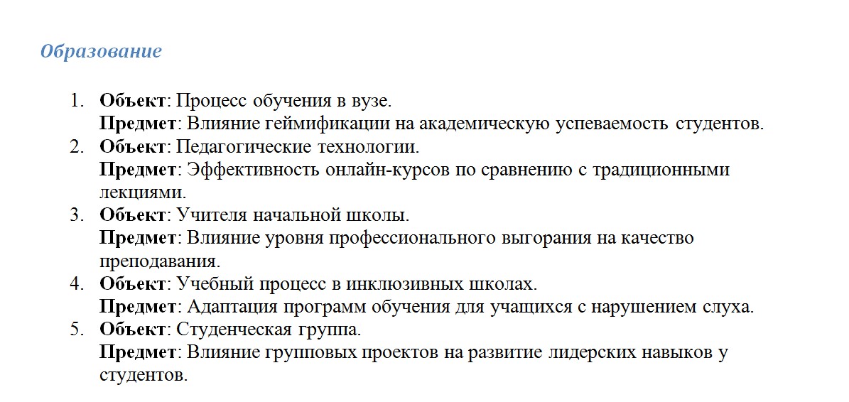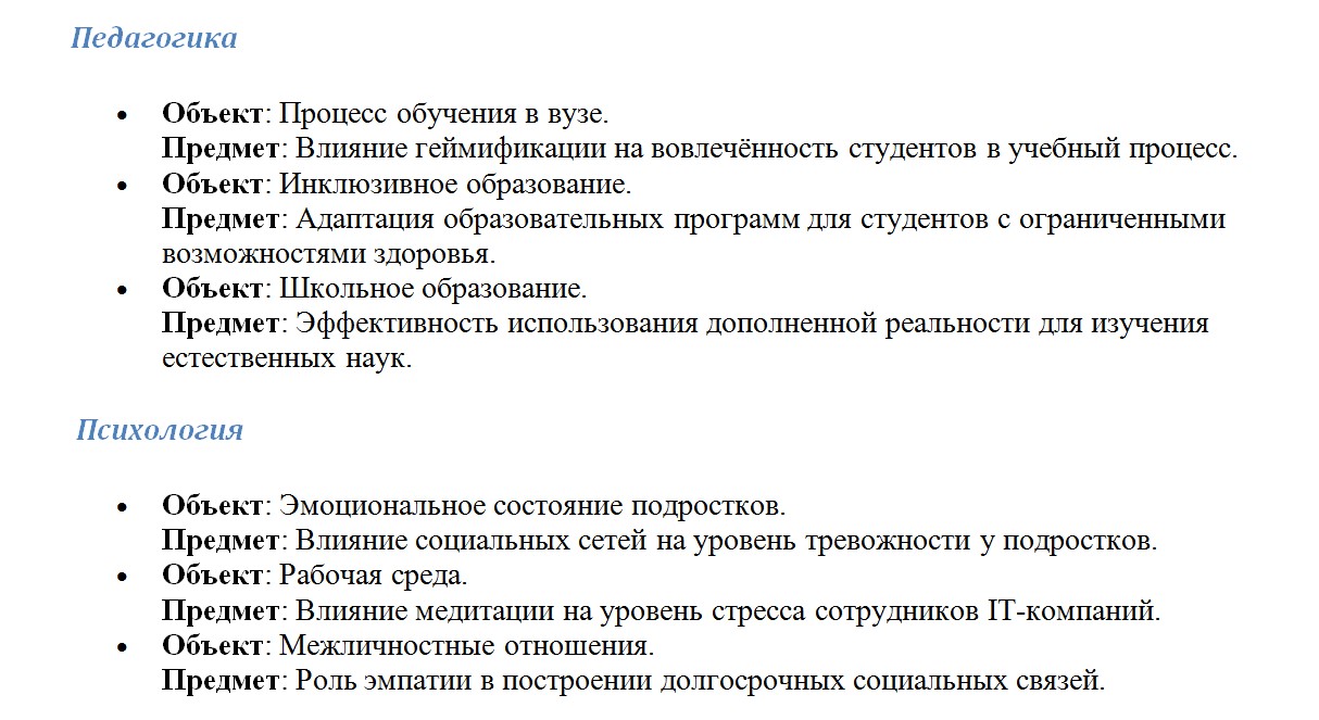 Пример: Если ты исследуешь влияние цифровых технологий на образование, объектом будет сам процесс обучения с использованием этих технологий.