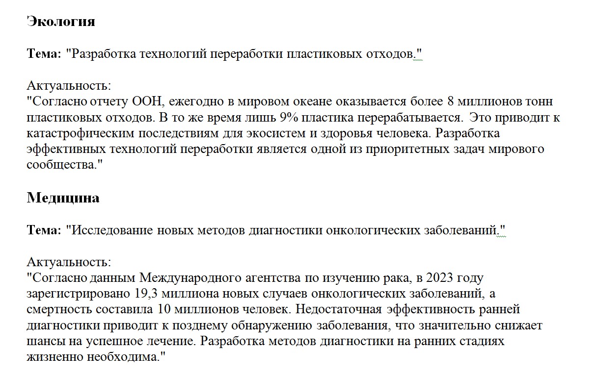 Допустим, если ты изучаешь экологию, то можно сослаться на изменения климата и растущие свалки. Если пишешь про медицину — расскажи, что старые методы лечения уже не так эффективны, а людей с этой проблемой становится всё больше.