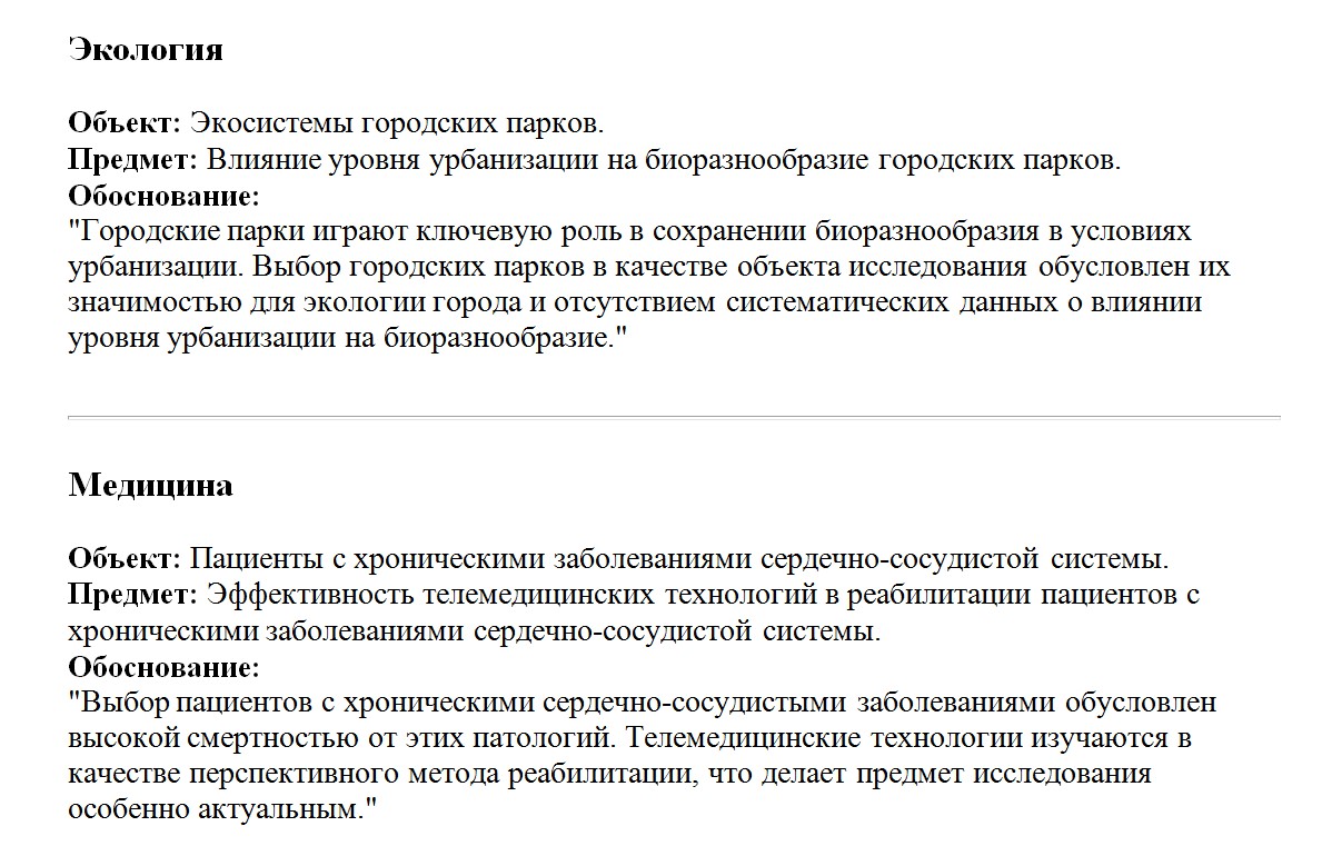 Допустим, если ваша тема связана с городской экологией, то объектом может быть воздух в городе, а предметом — концентрация вредных веществ.Зачем это нужно? Потому что в науке нельзя «изучать всё подряд». Нужно сузить тему, чтобы работа была конкретной и выполнимой. Поэтому важно объяснить, почему именно этот объект и предмет исследования достойны внимания.