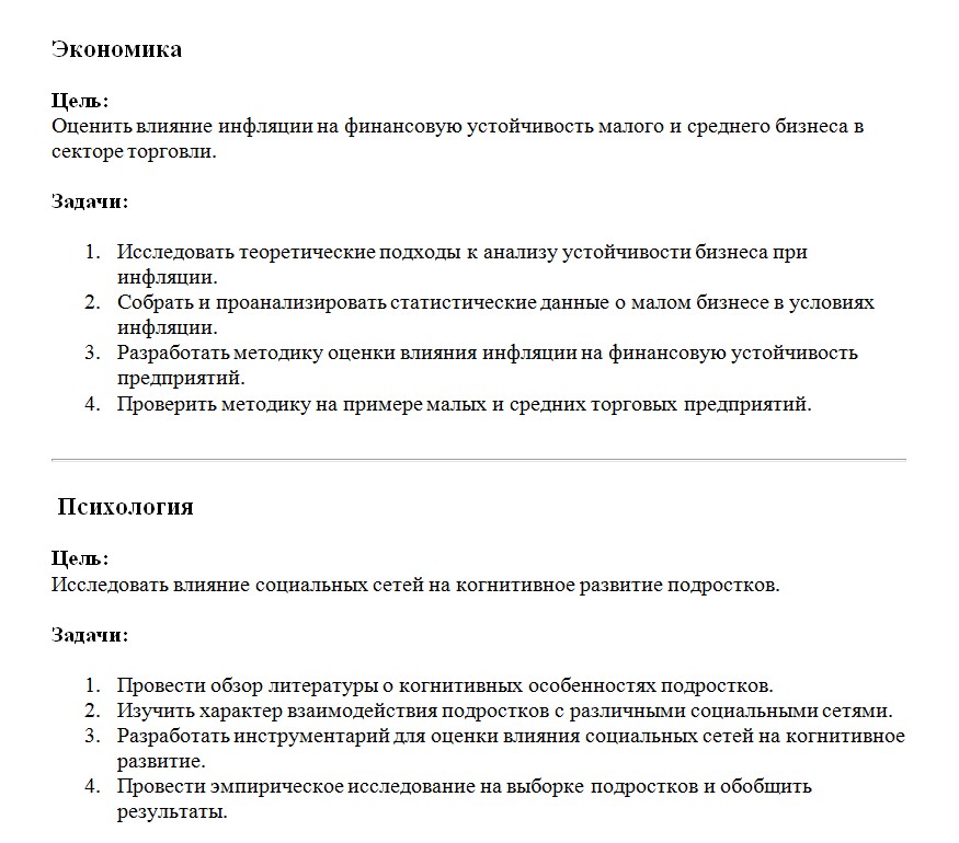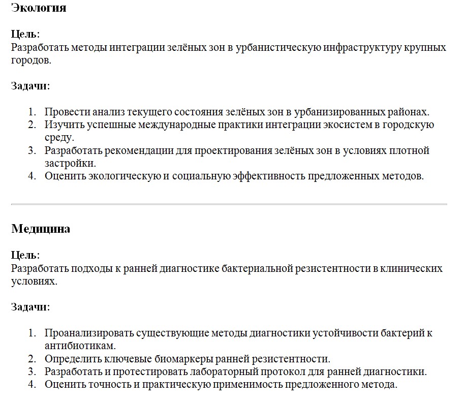 Пример: «Разработать методику оценки эффективности систем водоснабжения в городах с высоким уровнем загрязнения».