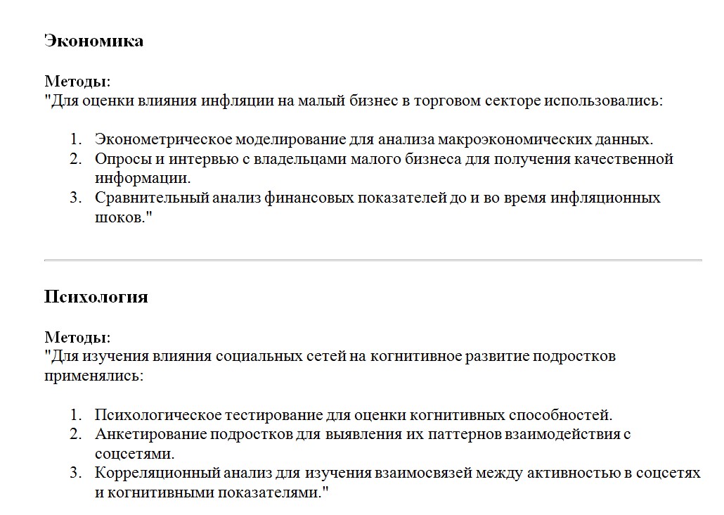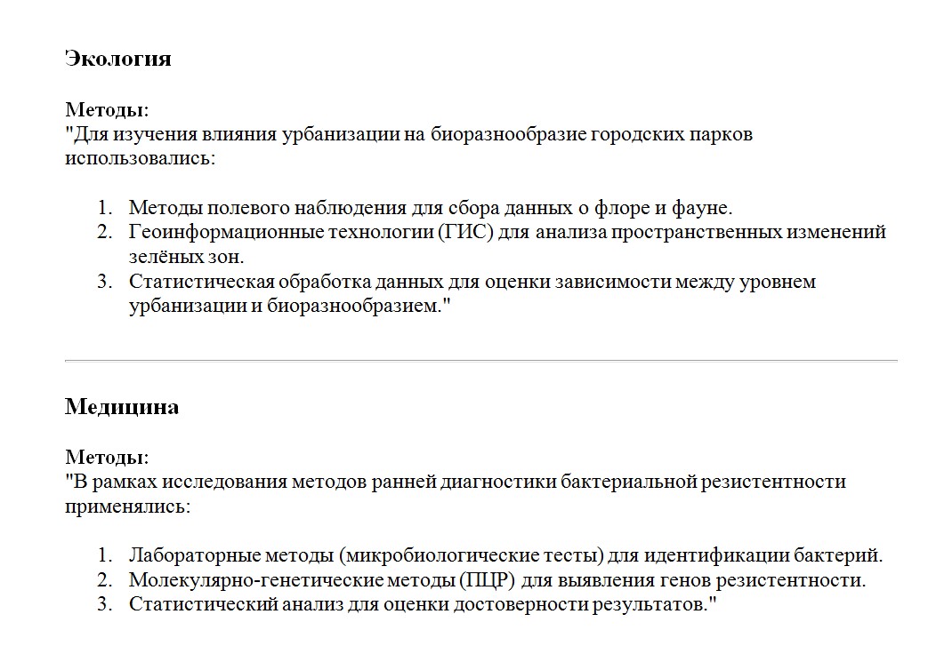 В гуманитарных науках это могут быть интервью и анализ текстов. В технических — эксперименты и моделирование. Главное — выбрать подходящие методы и объяснить, почему именно они помогут получить достоверные результаты.