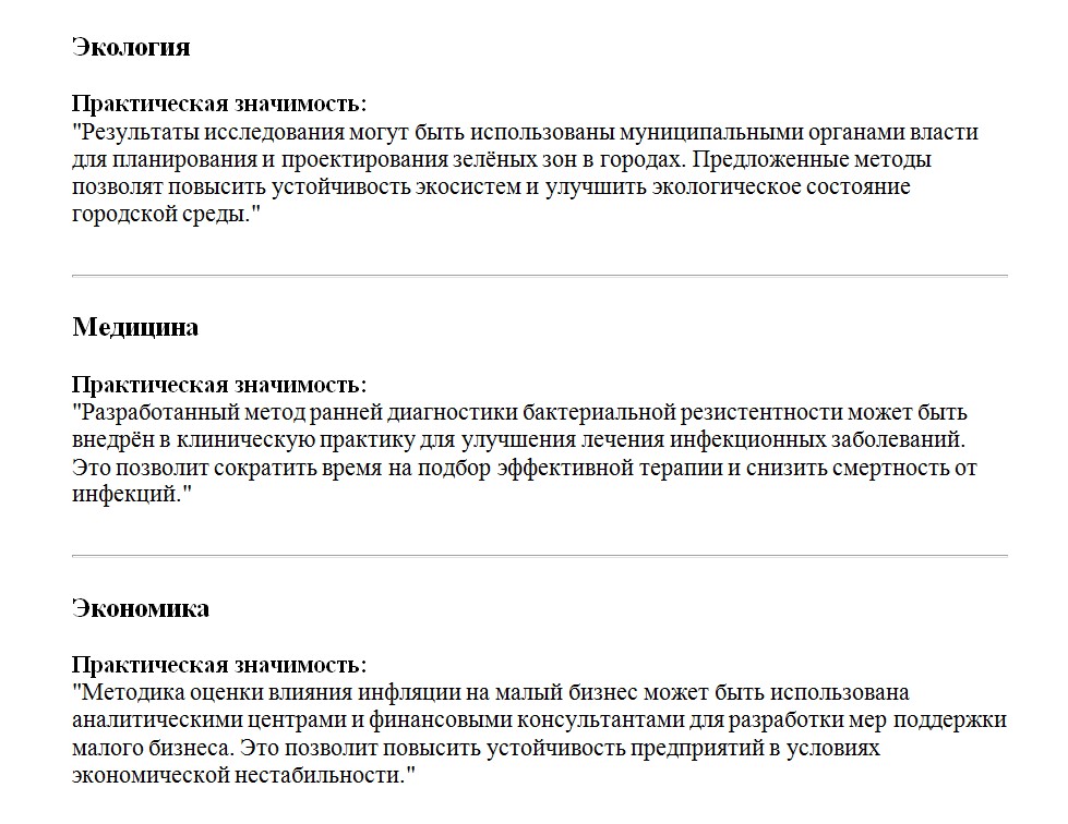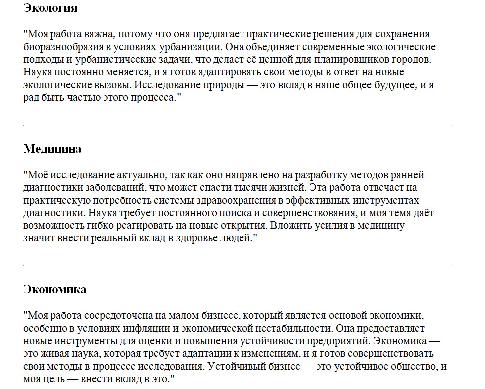 Например: «Моё исследование сочетает современные технологии и реальные потребности, что делает его актуальным для промышленности».