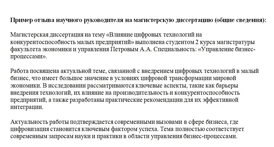 Хороший отзыв — это лаконичный, честный и взвешенный документ. Он показывает, что научный руководитель действительно курировал процесс, следил за прогрессом и способен дать объективную оценку.