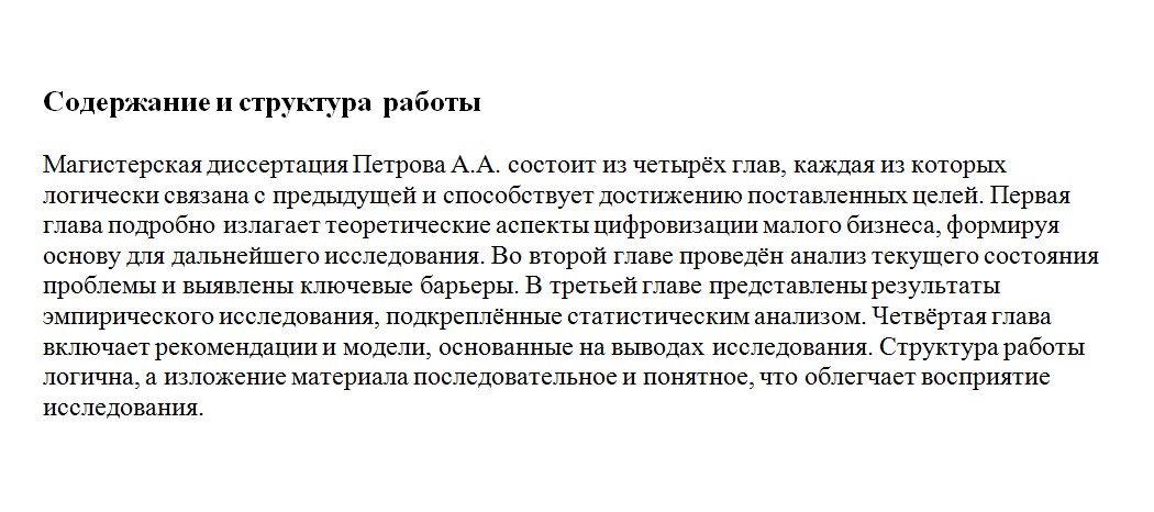 - Описание структуры работы вместо её оценки.