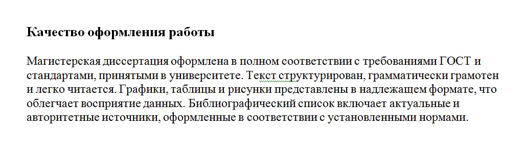 Хорошо ли организована работа? Есть ли логика между главами, как выстроена аргументация, всё ли изложено последовательно и понятно? Важно, чтобы текст был не набором несвязанных фрагментов, а цельным исследованием с внутренней логикой и чёткой структурой. Если это так — стоит отметить.
