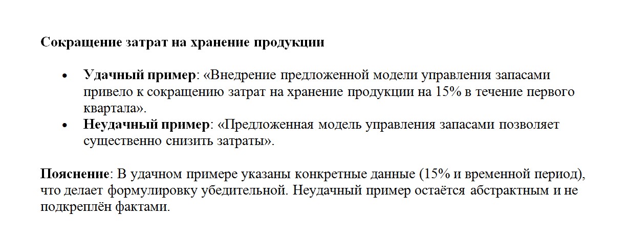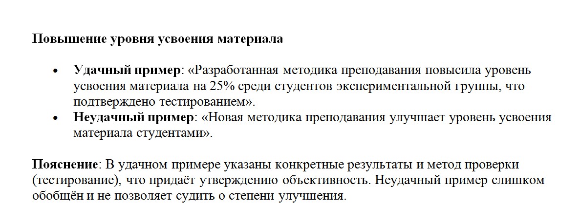 Чтобы лучше понять, как формулировать положения, рассмотрим примеры удачных и неудачных формулировок.