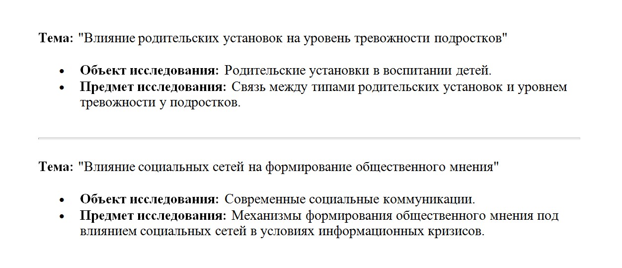 - Предмет – что конкретно вы изучаете в этом объекте.