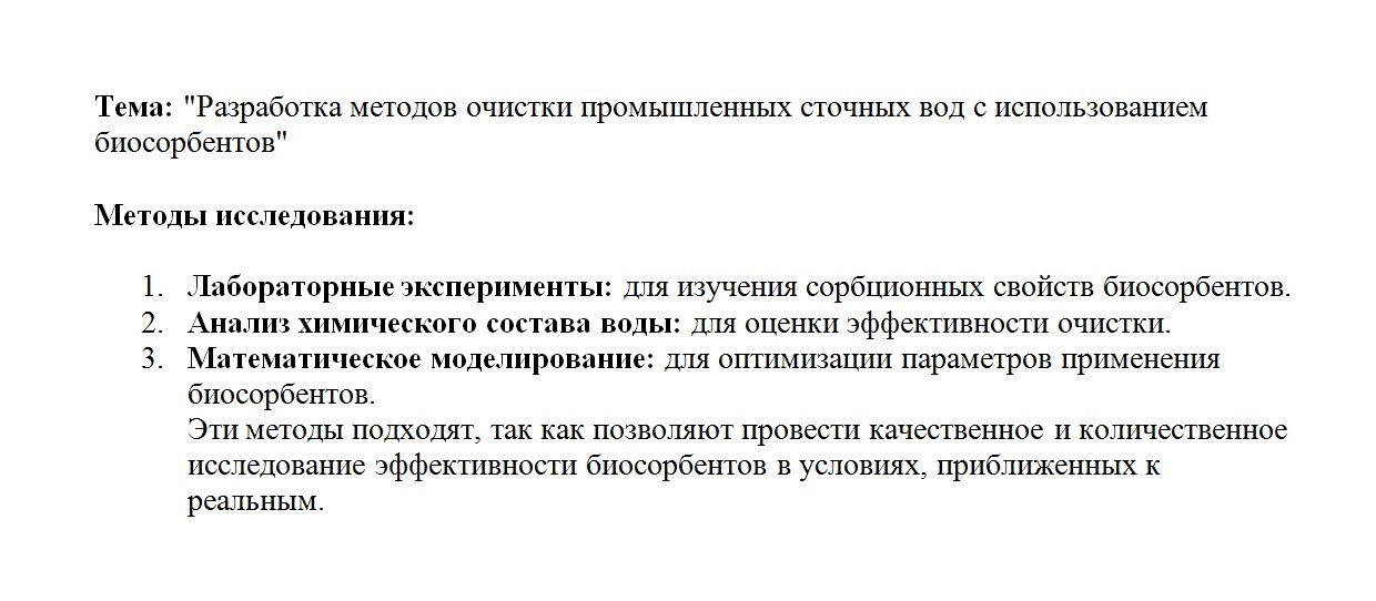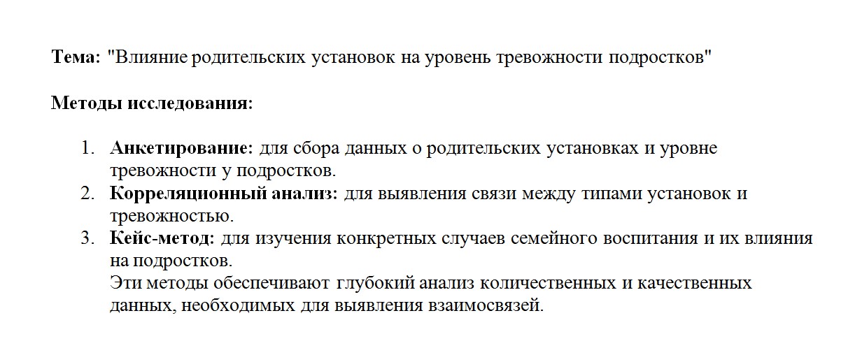 Пример: "Я провёл опрос среди 150 сотрудников IT-компаний, чтобы выяснить, насколько гибкий график влияет на их продуктивность. Также я проанализировал статистику работы команд с разным режимом работы."