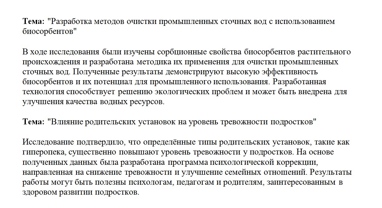 Тут объясняем, в чём ценность вашей работы. Что нового вы обнаружили? Как эти знания можно применить в реальной жизни?