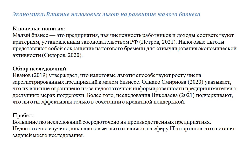 Этот раздел — твоя научная база. Нужно показать, что ты изучил работы других авторов и понимаешь, на чём строится твоё исследование.