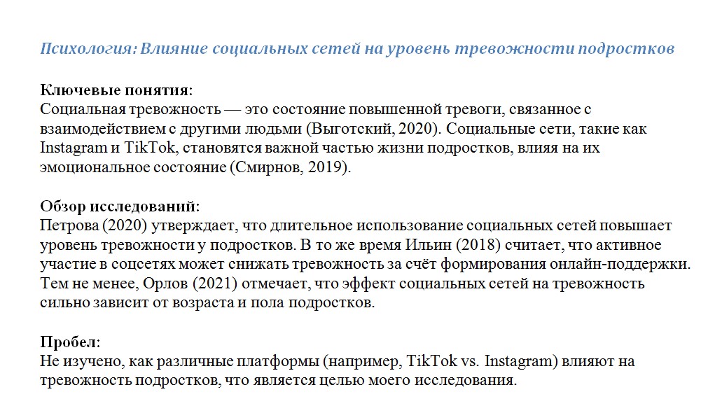 3. Покажи пробелы в исследованиях. Например, никто не изучал, как Instagram помогает образовательным проектам.
