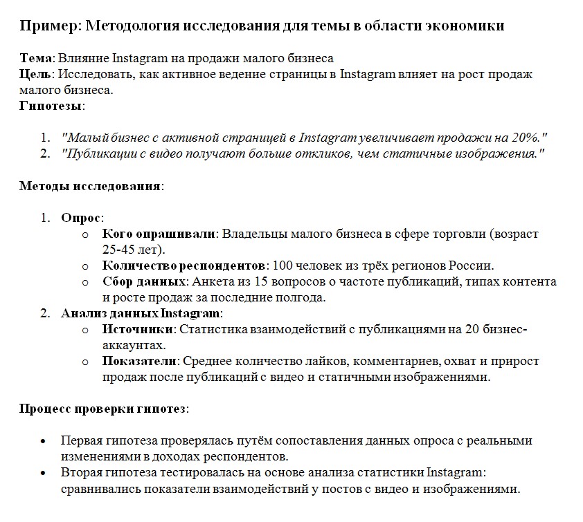 Цель исследования. К чему ты стремишься? Например: «Цель — изучить, как Instagram помогает малому бизнесу привлекать клиентов».