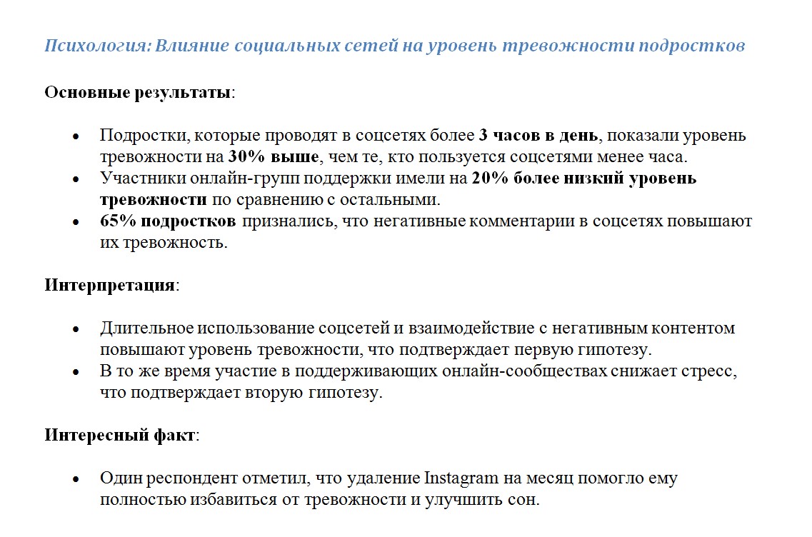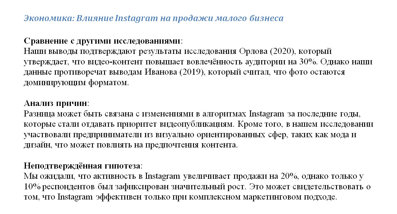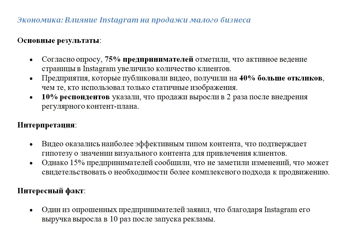 - Что ты выяснил? Например: «Instagram действительно помогает малому бизнесу».