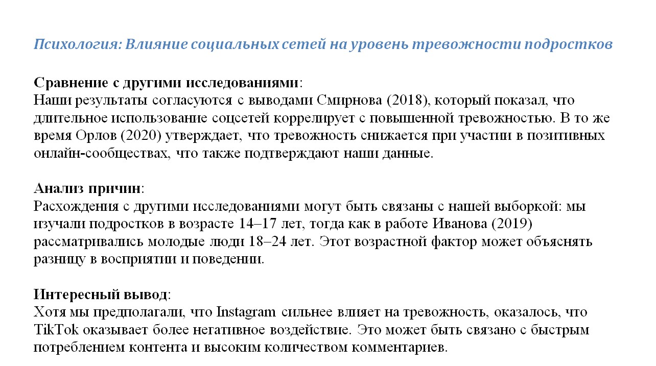 Здесь ты сравниваешь свои результаты с другими исследованиями.