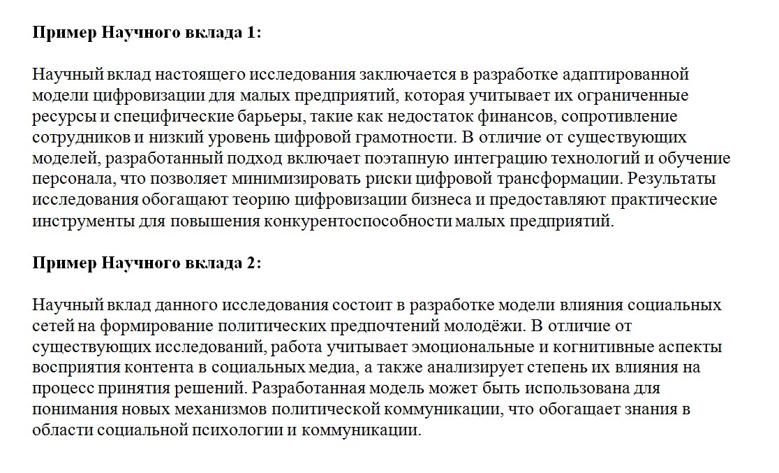 Комиссия оценивает самостоятельность мышления — покажите её.Рис 3. Пример научного вклада